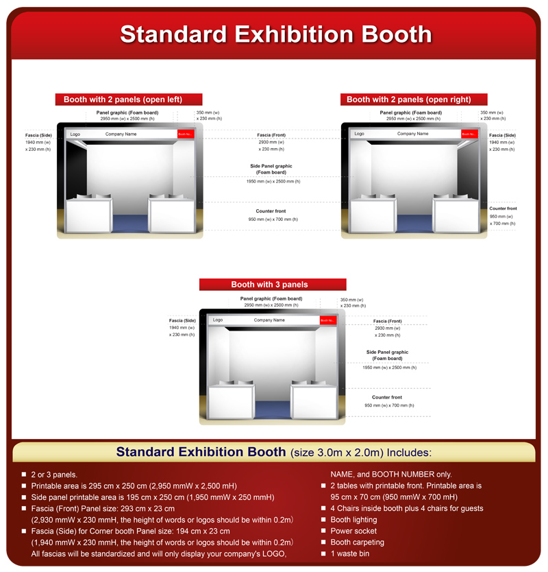 | 2. Standard Booth Structure (3.0m x 2.0m / 9.8’ x 6.6’) | ✓ |